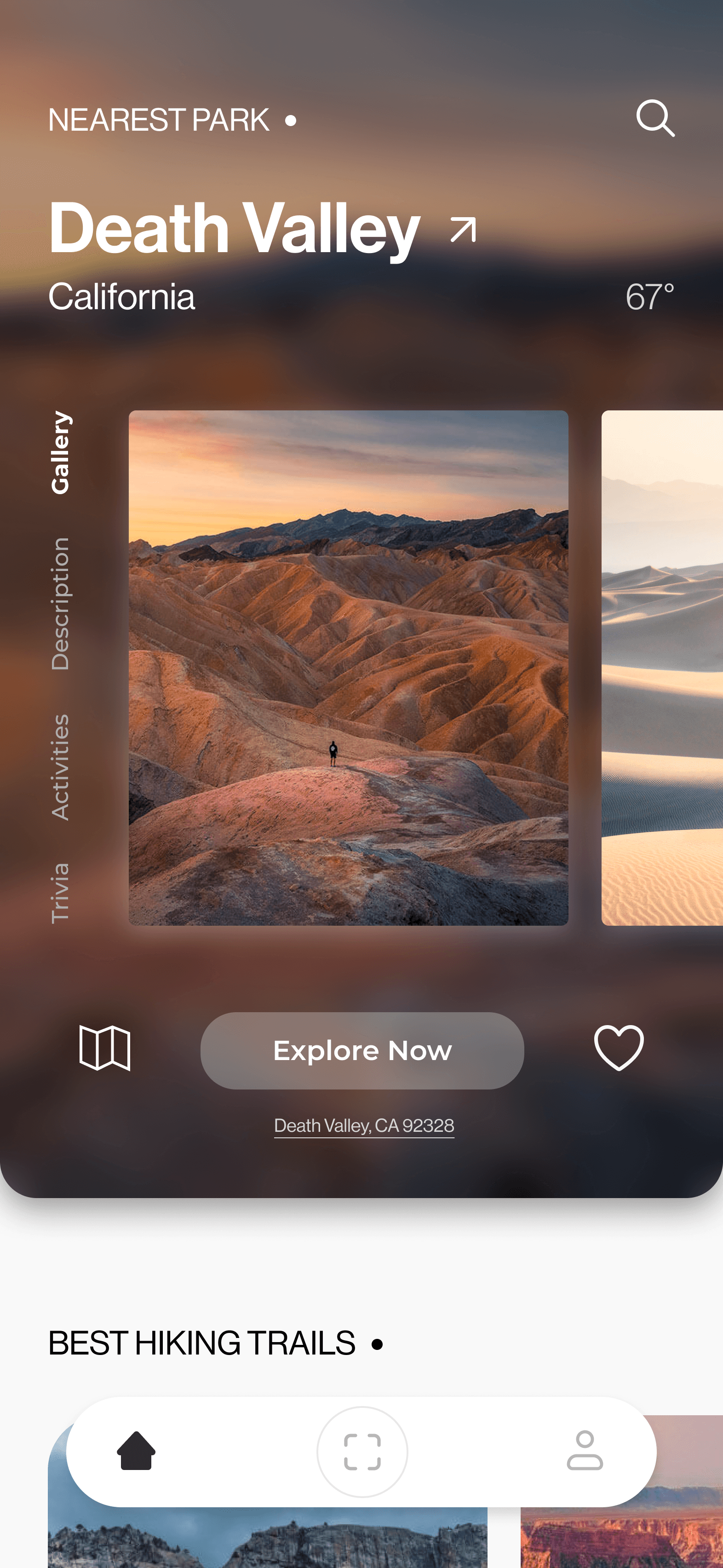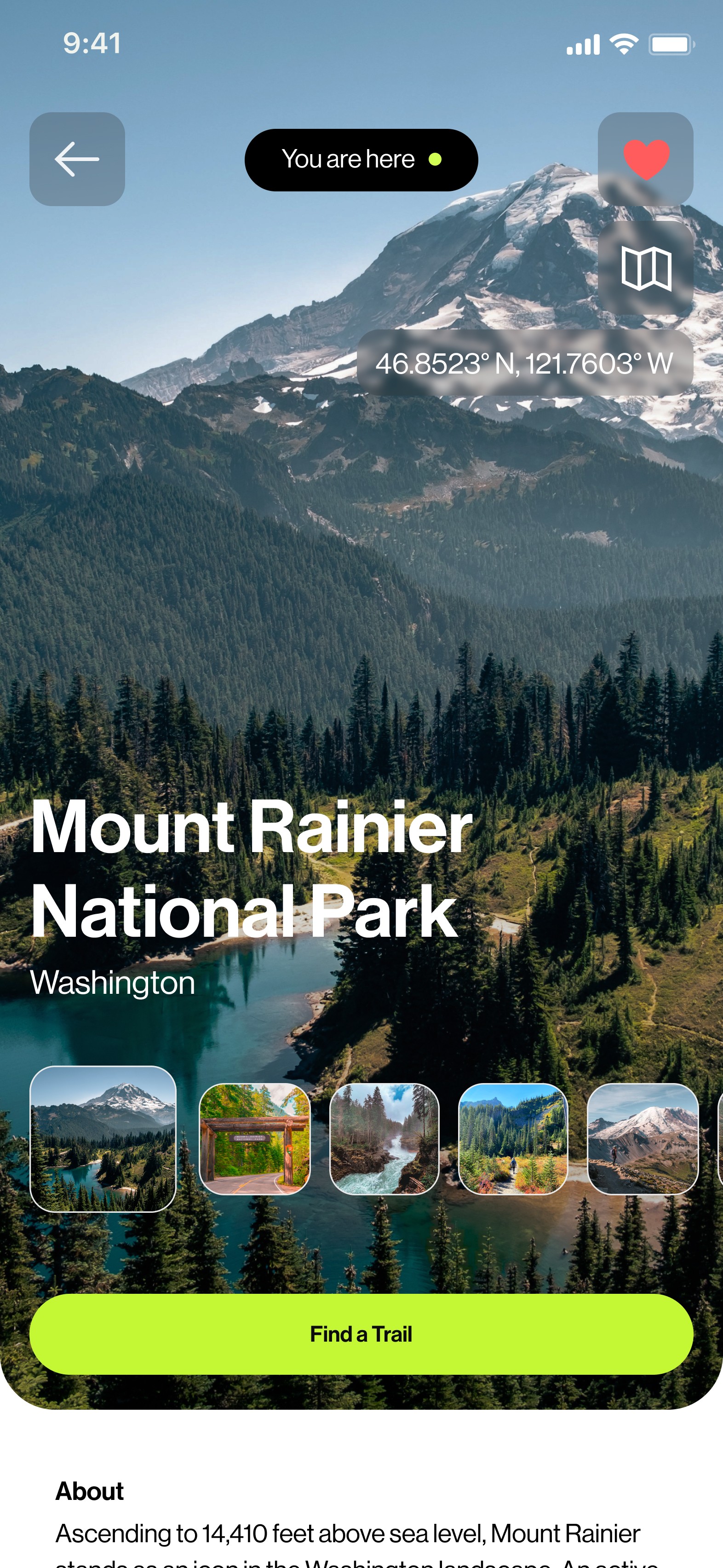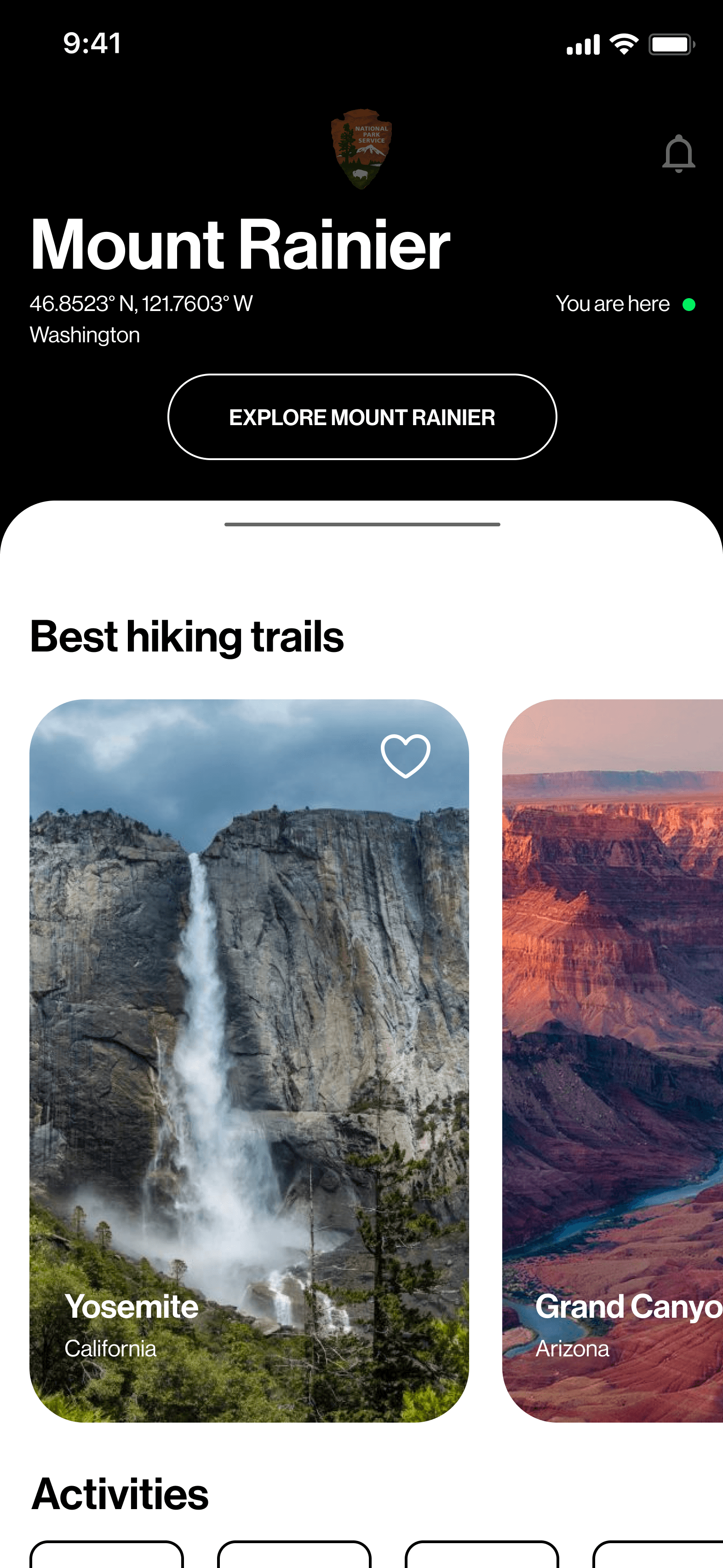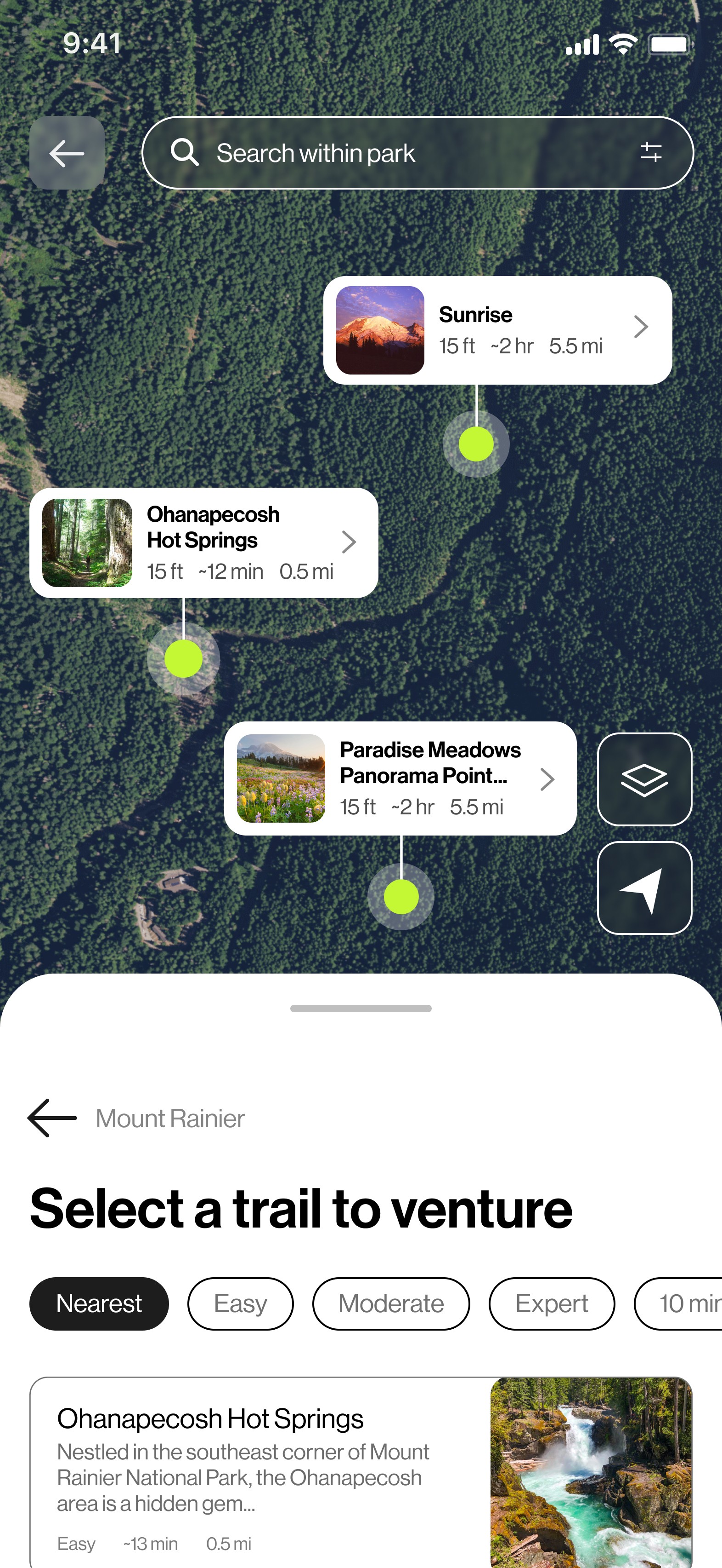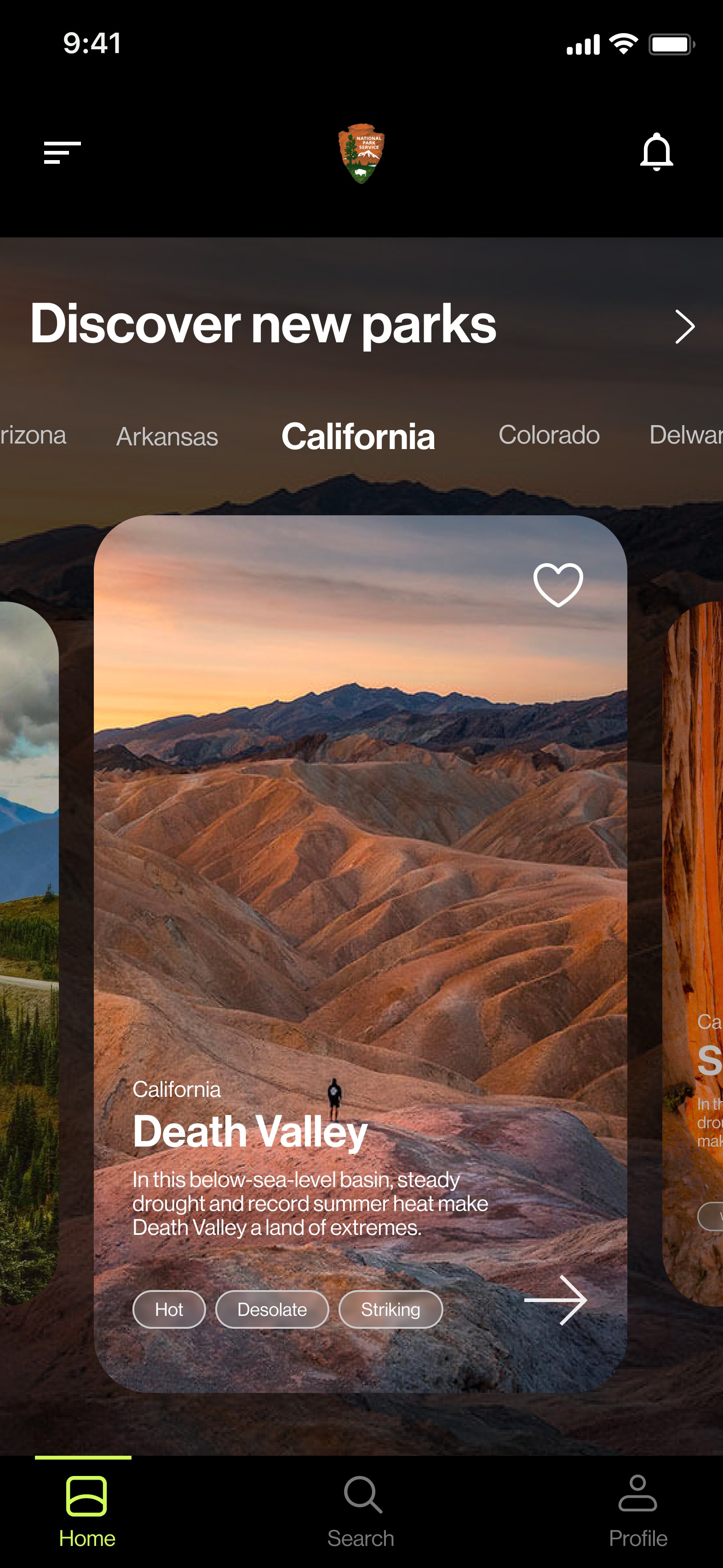 We felt these terms and the visual attributes described the experience visitors want to undergo when entering a National Park they've never explored before, eager to connect with nature. It heavily guided us in our app's visual language and tone.