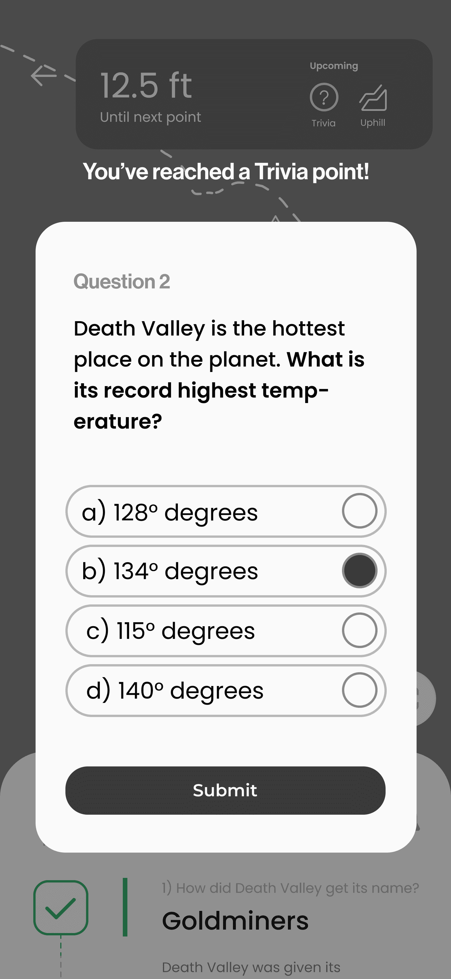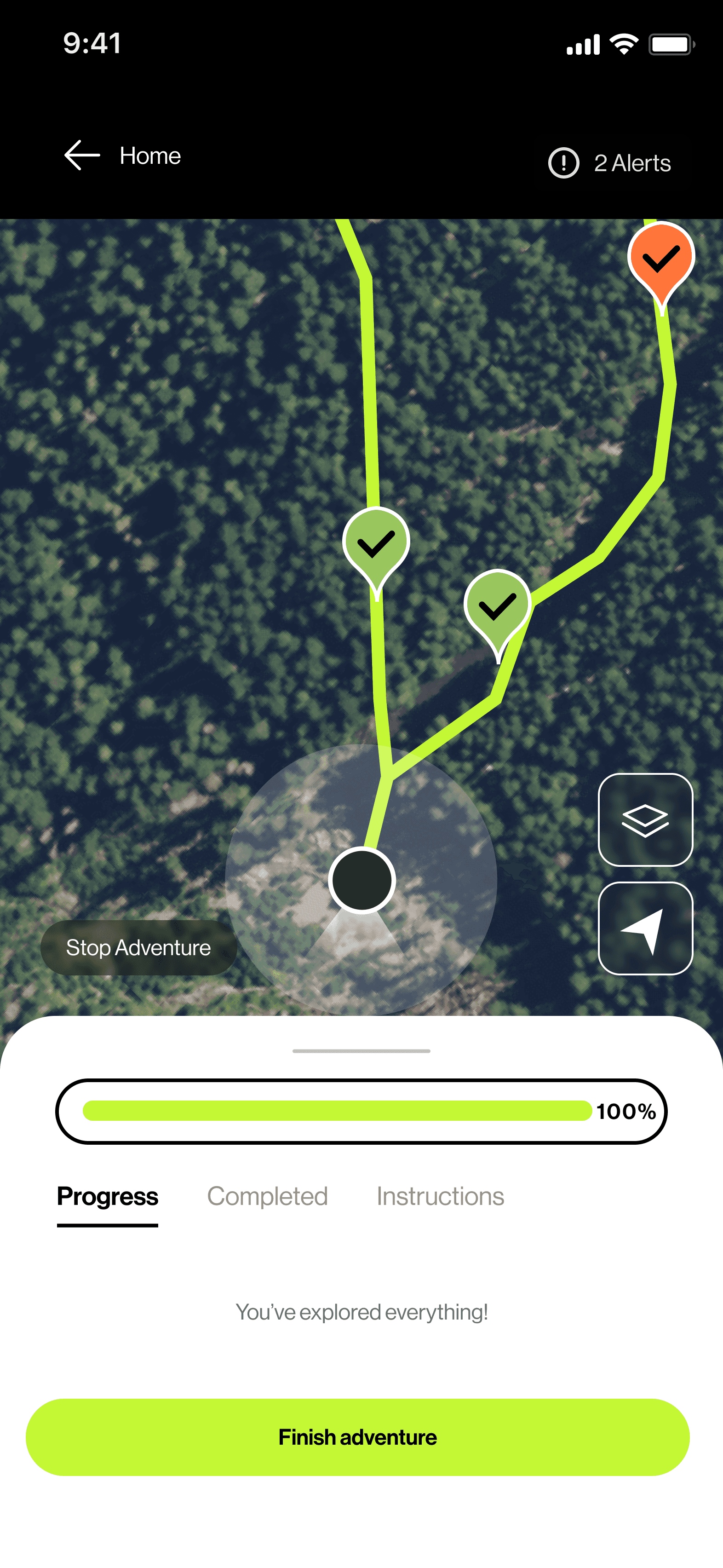 The hardest challenges came from making our user-interface style uniform across screens and crafting intuitive experiences (or more importantly, avoiding convoluted ones). Improving the home screen so that it was clear the "You are here" section was a quick-action button for visitors to navigate straight to that National Park's adventure page was a notable problem for us, along with gamifying the live map and designing the AR camera.