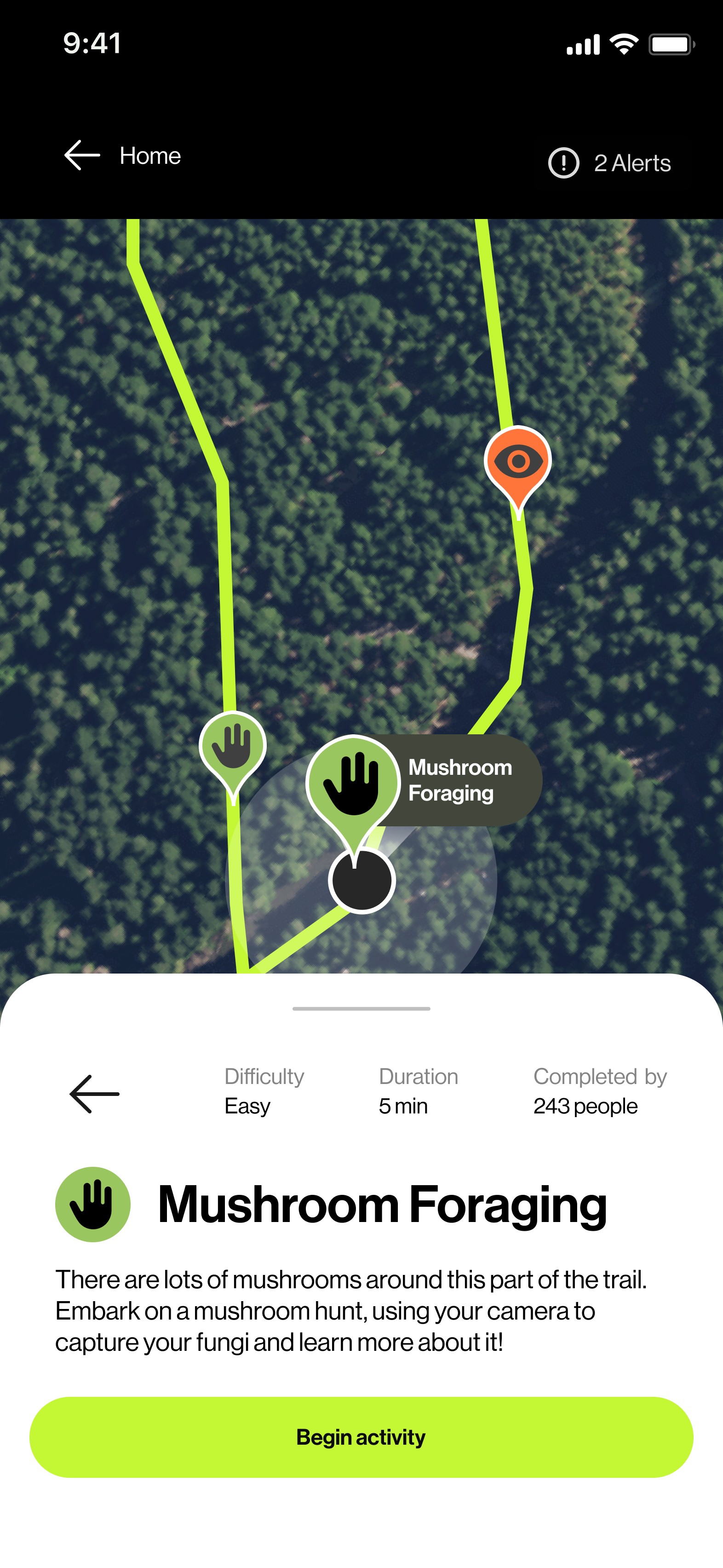 Incorporate interactive elements such as augmented reality, geolocation, and gamification to make the exploration experience more engaging and brings the park to life.